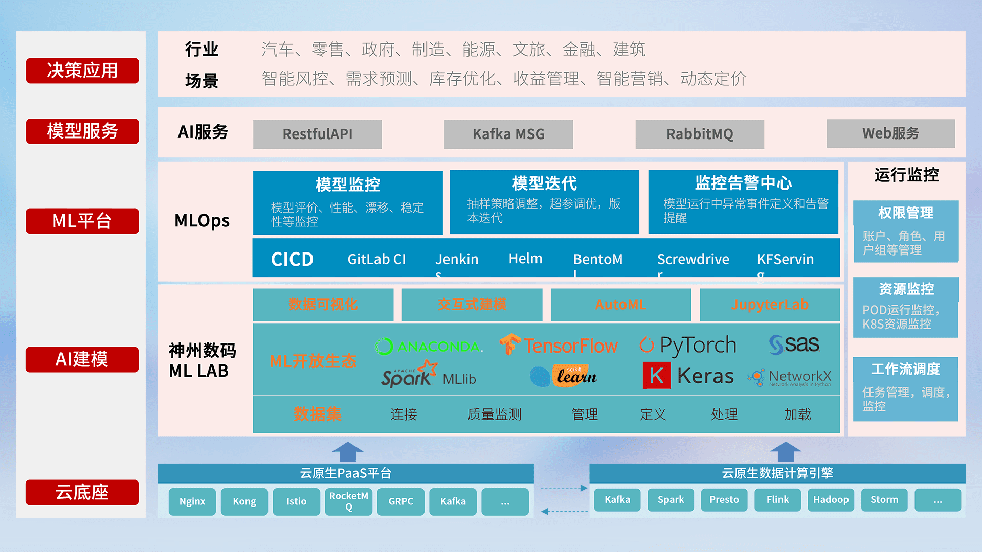 数据+模型双引擎驱动,,面向智能服务场景,,,,快速灵活利用AI技术,,,支持业务决策,,,,助力企业智能化转型破局。。